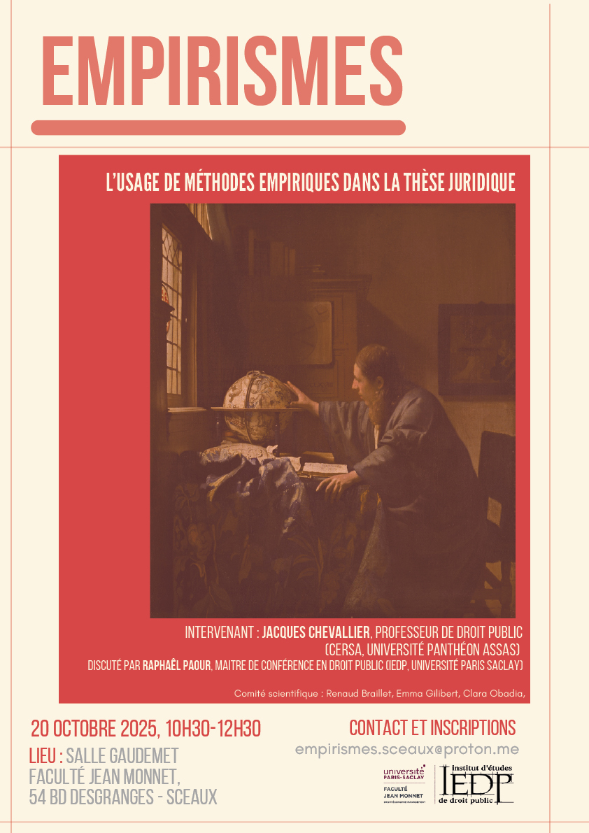 2025-10-20 10:30 2025-10-20 12:30 L’usage de méthodes empiriques dans la thèse juridique.