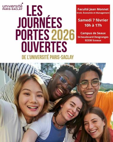 07 Fév Faculté Jean Monnet (Droit, Économie, Management) - Université Paris-Saclay Journée portes ouvertes 2026 Cette année marque une étape décisive dans votre parcours d'étude. De la formulation des vœux sur Parcoursup...